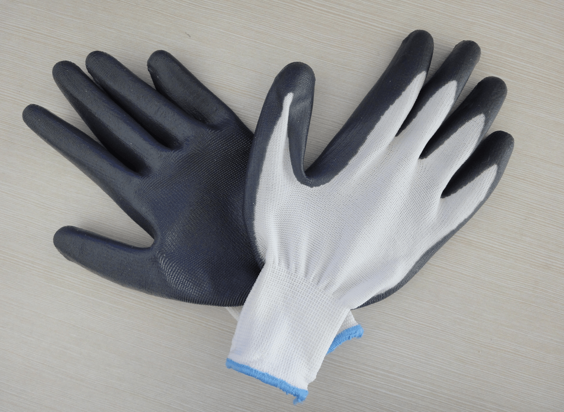 - 13 gauge white polyester liner with grey nitrile